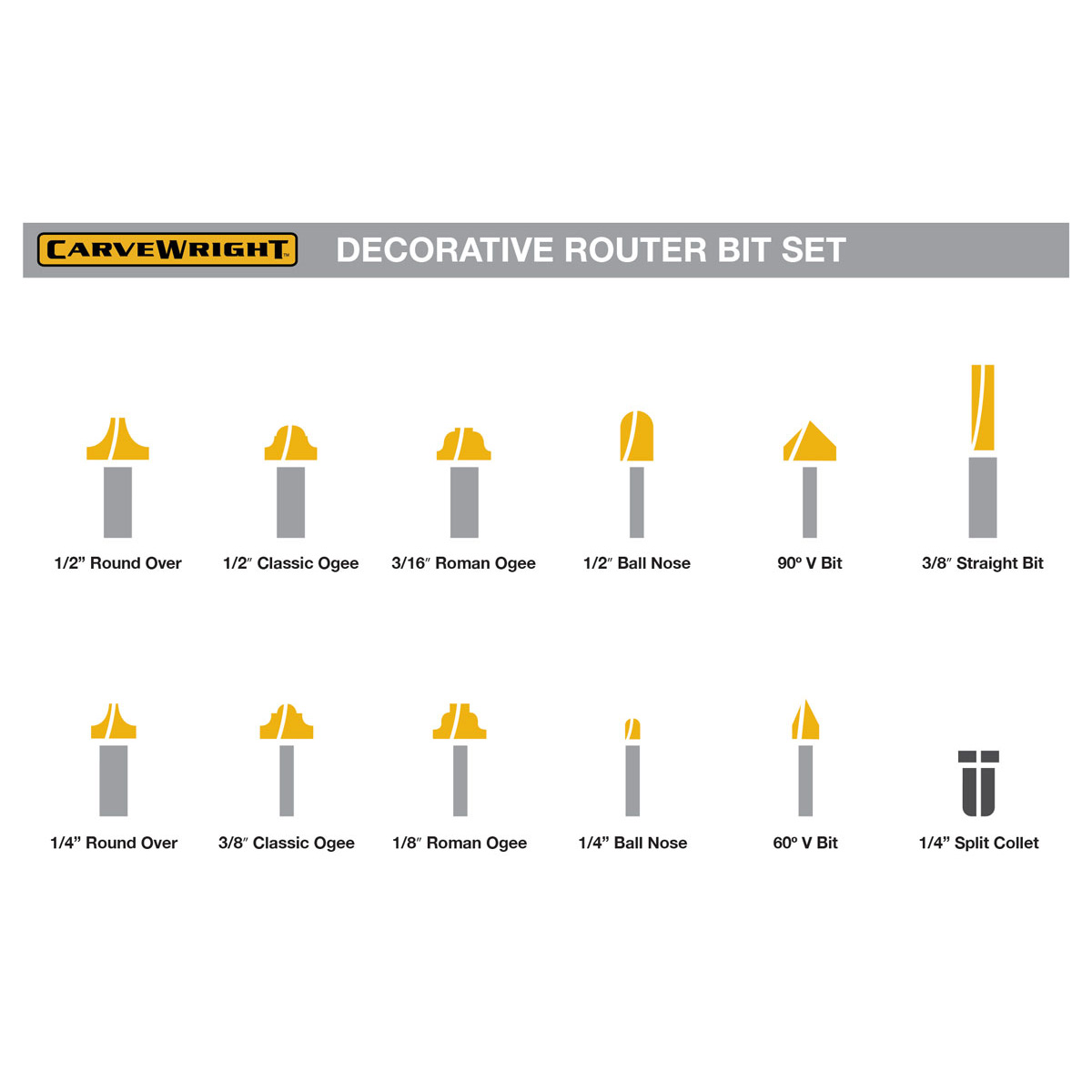 This complete set of router bits is everything you’ll need to add those decorative touches to any project. Configured specifically for all CarveWright CNC Systems, these top quality carbide decorative bits are designed for long-life and precise cutting performance.
